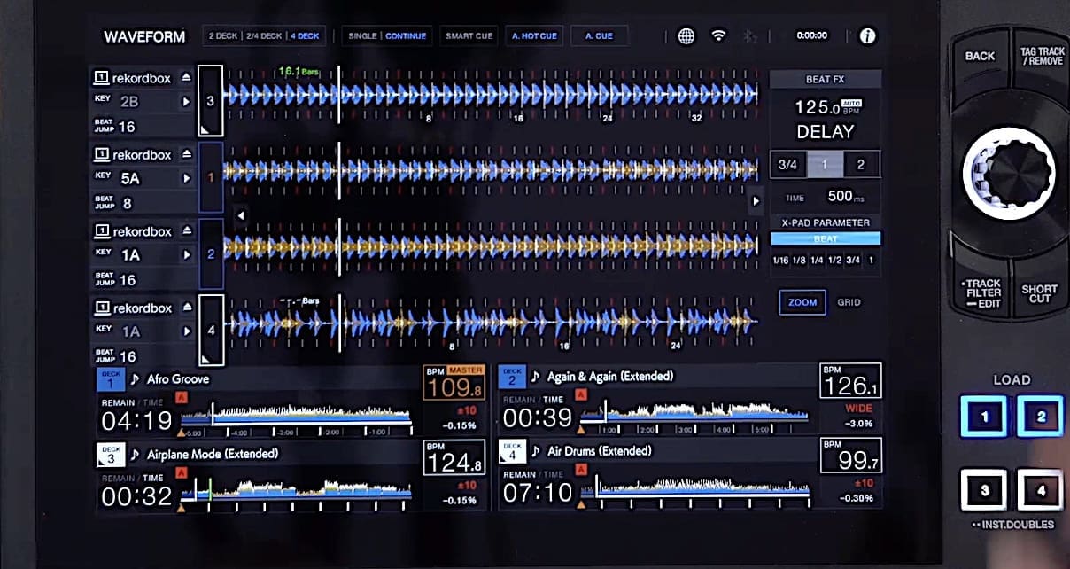 When we reviewed the AlphaTheta XDJ-AZ, one of our biggest criticisms was that you couldn’t see all four-deck waveforms at once when DJing with four decks. It was a strange omission on a unit that’s clearly designed for multi-deck performance, and it bugged us.